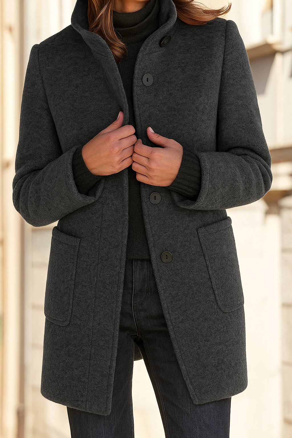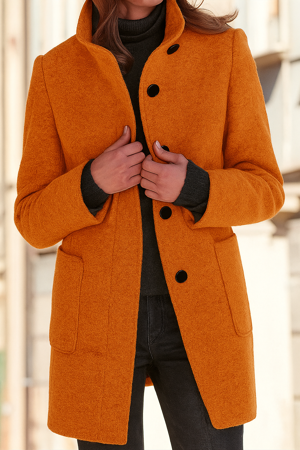 El abrigo Megan destaca por su diseño clásico y corte atemporal que encarna la elegancia con un toque moderno y lleno de personalidad. Confeccionado en tejido cálido de calidad, ofrece confort térmico y estilo mientras mantiene un look sofisticado, versátil y con la distinción de una prenda pensada para brillar en cualquier ocasión.