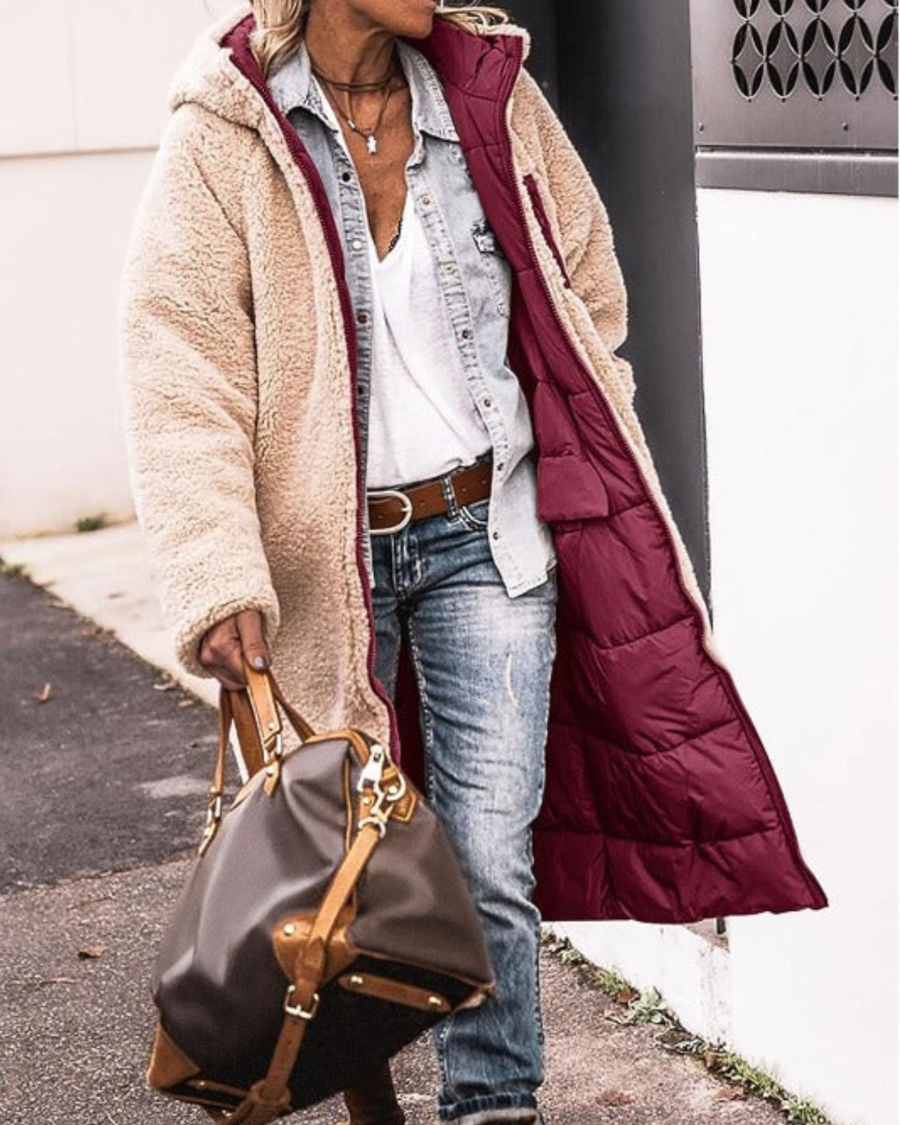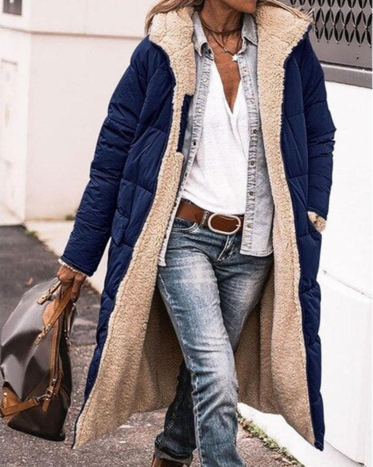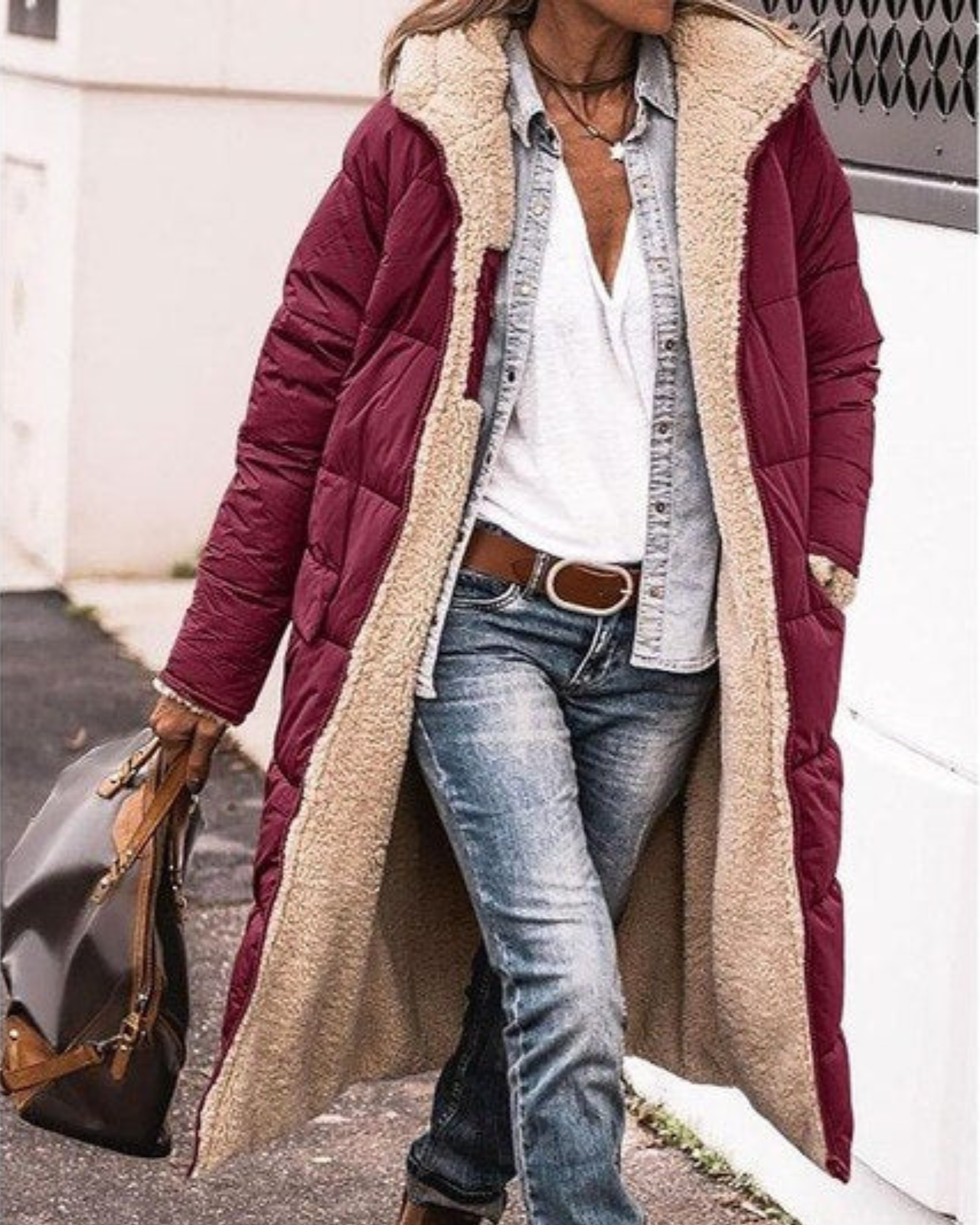 El abrigo Sophia destaca por su diseño reversible y corte de temporada que te ofrece dos looks completamente diferentes en una sola prenda, multiplicando tus posibilidades de estilo. Confeccionado en tejido cálido de calidad, ofrece confort térmico y versatilidad mientras mantiene un look elegante, funcional y con la clase de las grandes estrellas para que afrontes el invierno con una prenda que se adapta a ti.